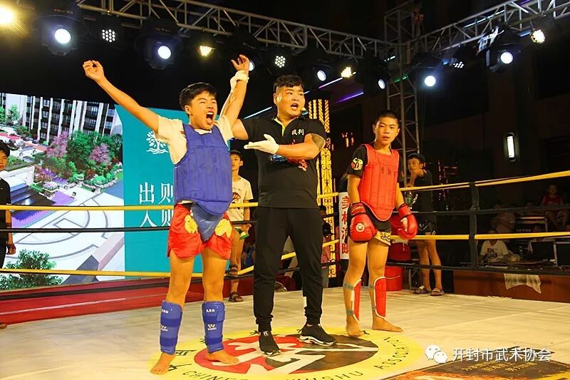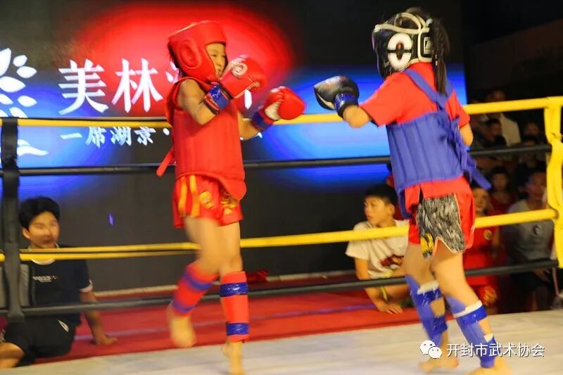 开封市武术协会、开封市万岁山公园大宋武侠城、开封市祥符区搏击协会开封风云武校、开封功夫宝贝俱乐部、开封培英边村搏击馆省辖市、武馆、俱乐部、及各团体单位均可自愿报名参加本次活动。(3)称体重时间:2019年10月3—5日早上7:30分。具体时间以最后通知为准。(4)比赛地点:河南省开封市万岁上大宋武侠城森林公园内。(5)参加报名各单位:须在9月28日前把报名队员信息及户口本复印件以电子版、微信方式发至开封市武术协会。(6)凡参加报名各单位队员,吃、住、行费用自行解决。(7)参加比赛各队员:身份证信息必须准确,报名体重上下不得超过一公斤。如:身份证信息不准确,报名体重不准确取消比赛资格,报名费不予退还。少儿组参赛年龄分组、级别分组声明:按照年龄级别分组不得小于2公斤和大于2公斤,如果级别不同或大于2公斤和小于2公斤。45Kg、52Kg、57Kg、60Kg、65Kg、五个级别(三)禁用方法:1、用头、肘、膝、和反关节的动作进攻对方。2、用转身后摆腿进攻对方头部。3、用迫使对方头部先着地的摔法或有意砸压对方。 (六)可用方法:除禁用方法外的各种武术流派的招法。(七)优势胜利、在比赛中,双方实力悬殊,台上裁判员征得裁判长的同意,判技术强者为 该场胜方。(八)被重击KO(侵人犯规除外)倒地不起达10秒,或虽能站立但知觉失常,判对方为该场胜方。(九)一场比赛中,被重击强制读秒(侵人犯规除外)达3次,判对方为该场胜方。(十)比赛中,运动员出现伤病,经医生鉴定不能继续比赛者,判对方为该场胜方。(十一)比赛分为两个回合,每回合1分钟30秒,中间休息30秒。(十二)比赛规则如有调整必须按照、听从比赛组委会安排调整。(十三)本届大赛最终解释权为开封市武术协会主办方所有。(一)(得一分标准)1、用腿法击中对方大腿内侧与外侧部位,有明显的响声与腿部移动。2、用拳法击中对方头部,造成对方头部明显后仰。3、运动员消极8秒,被指定进攻后,8秒钟内仍不进攻,对方得1分。4、主动倒地超过3秒钟不起立,对方得1分。(二)(得二分标准)1、被强制读秒一次,对方得2分。2、受警告一次,对方得2分。3、用腿法击中对方躯干部位,有明显的击打响声得2分。4、使用腿法造成对方倒地得2分。5、使用直线腿法如;(正蹬腿、侧踹腿,后蹬腿)造成对方身体有明显移位得2分。6、使用一次性接腿法,站立者得2分。(三)(不得分标准)1、使用动作方法不清楚,击打效果不明显。2、双方倒地。3、双反乱打乱踢没有明显击打效果。4、双方抱缠时击打不得分。(四)(竞赛犯规)1、消极搂抱对方,背向对方逃跑,2、处于不利状态时举手暂停,有意拖延比赛时间,3、上场不戴或有意吐落护齿松脱护具,4、比赛中对裁判不礼貌行为,或不服从裁判,5、侵人犯规,在口令开始前或裁判喊停后进攻对方,6、击中对方的禁击部位,7、以禁用方法击中对方。(五)(竞赛罚则)1、每出现一次技术犯规,劝告一次。2、每出现一次侵人犯规,警告一次。3、侵人犯规2次,取消该场比赛资格。4、运动员故意伤人,取消其比赛资格。5、运动员使用违禁药物或局间休息时输氧,取消其比赛资格。(一)选手必须佩戴装备:拳套、护头、护腿、护胸、护裆、护齿、短裤。组委会提供统一护具拳套、护头、护腿、护胸、护裆,其他装备需选手自行准备。(二)特殊装备:选手可以自行佩戴护踝。女子选手可穿短袖上衣进行比赛。(三)选手只可佩戴以上要求的护具与装备,其他装备不可佩戴。(四)本次比赛参赛队员自行准备护齿,比赛过程中必须佩戴护齿,如不佩戴护齿将取消比赛资格,后果自负。(一)运动员须在赛前20分钟参加检录,两次点名未到,按弃权处理,报名费不退。(二)各参赛单位,运动员,裁判员要严格遵守和执行竞赛规程,规则和相关规定,公平竞赛,公正执裁,团结友谊,和谐共处。(三)本次比赛,只为给各参赛单位青少年队员,提供展现自我的平台,不参与任何违法、犯罪、违规的行为。(四)本次比赛为弘扬中国国粹武术散打搏击运动,让各队少年队员有展示自我,提高自身技术水平的机会,共同弘扬中华武术散打搏击运动,和平发展。 (五) 根据组委会协商,本次比赛参赛报名单位,报名的参赛的队员必须是自己本俱乐部或者武馆自己的队员,不准邀请其他俱乐部、武馆的队员,如发现不是自己本俱乐部的队员,取消参赛单位,及本俱乐部所有队员的比赛资格,后果自负。(六)所有参赛单位,听从开封市武术协会组委会的统一安排,若有变动,另行通知,如不听从大赛组委会统一安排,将取消比赛资格,报名费不予退还。本着以赛养赛的原则,参赛队员需在报名时,每人一次性交200元的会务费。